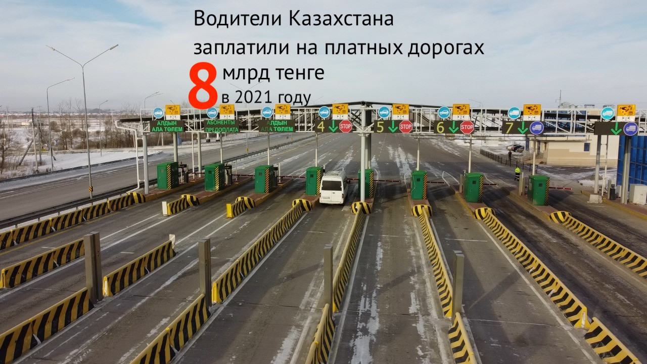 «С 23 ноября прошлого года заработали еще 7 платных участков: «Тараз – Кайнар», «Шымкент – Кызылорда», «Шымкент – Тараз», «Шымкент - гр. Узбекистана», «Талдыкорган – Капшагай», «Кокшетау – Щучинск», «Нур-Султан – Павлодар». До конца 2021 года сборы с данных участков составили 1,2 млрд. тенге», подчеркнули в нацкомпании.