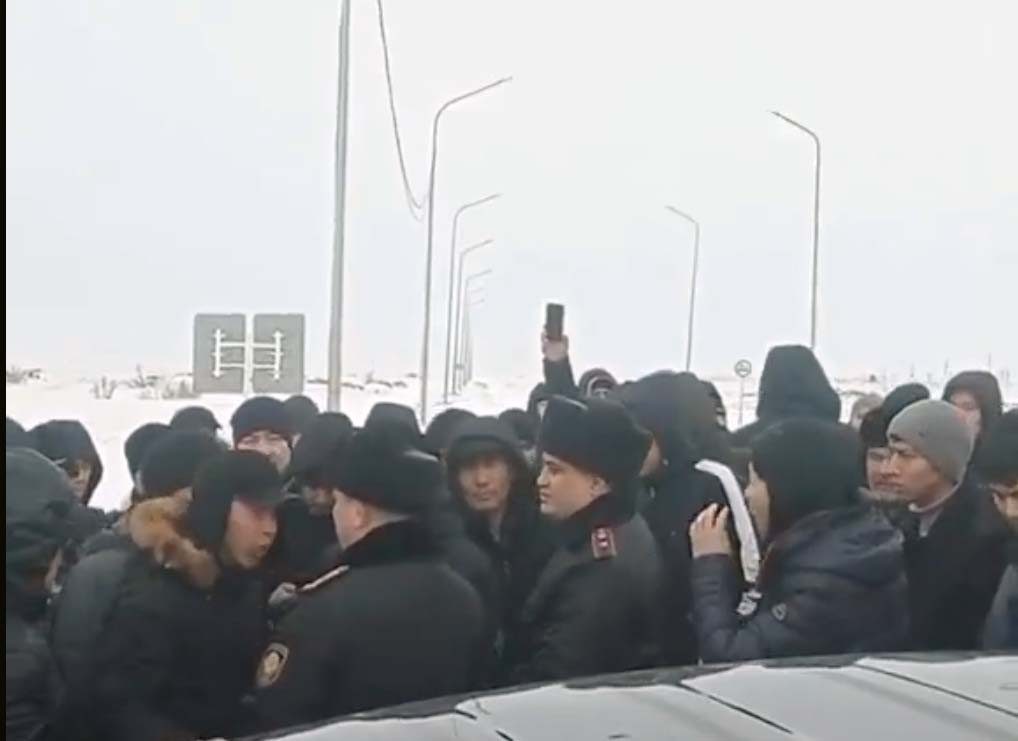 В Сеть попало видео, где группа водителей бурно требует открыть проезд до Караганды.