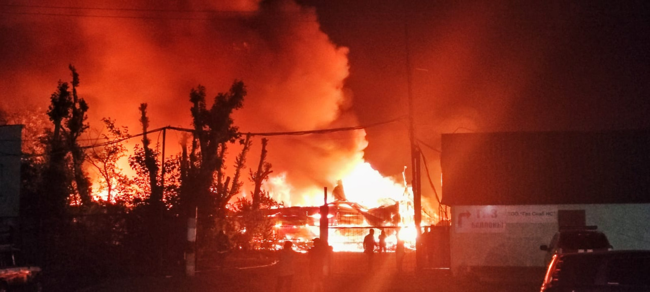 В Нур-Султане 25 июля в 22-05ч на пульт «101» поступило сообщение о пожаре по адресу: пер. Кобда, 6. Сотрудники столичного подразделения ДЧС установили, что горят одноэтажныхе здания и кровля двухэтажного ангара. Кроме этого, в помещении газонаполнительной станции происходит факельное горение газа. На месте пожара создан штаб пожаротушения, организованы боевые участки тушения пожара. По предварительной информации от станции скорой помощи имеются четверо пострадавших. Силами огнеборцев пожар локализован в 00.05ч.
