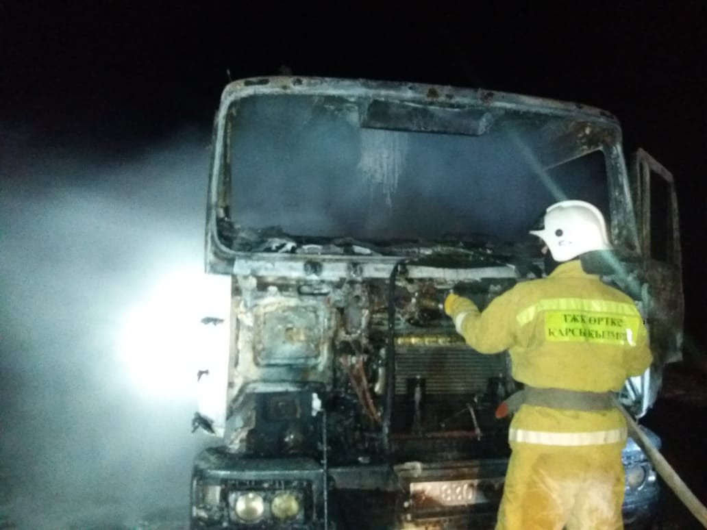 Сегодня, 13 декабря текущего года в 06 часов 27 минут на номер 101 поступило сообщение о том, что по трассе Кызылорда - Жезказган горит автомобиль "Камаз".