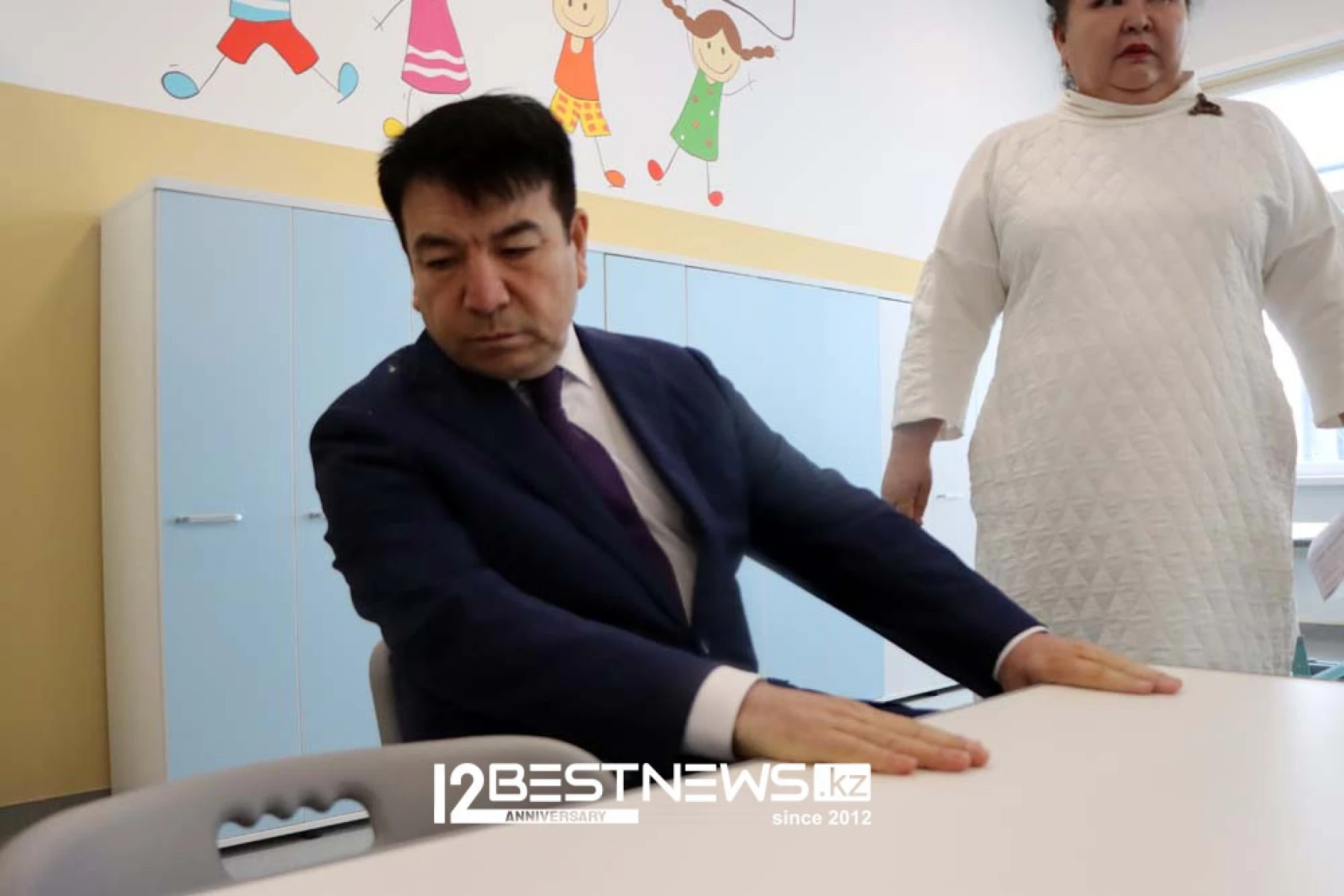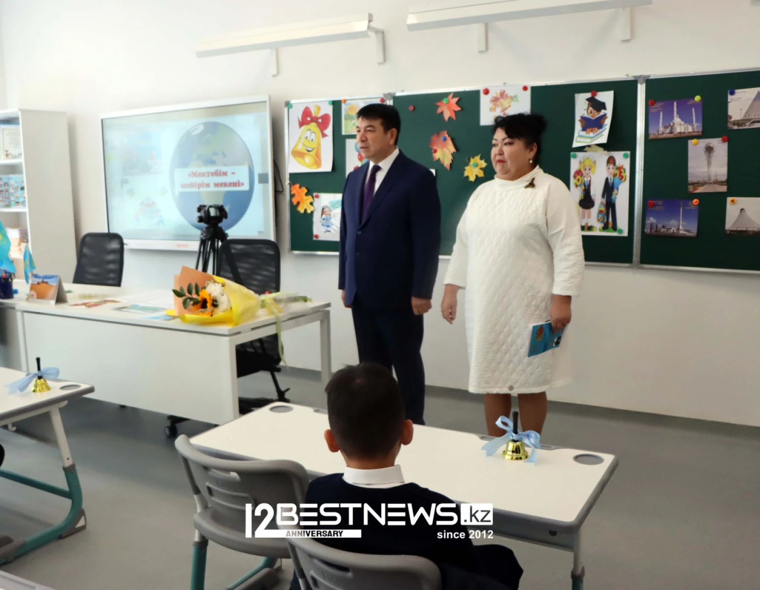 Был еще один любопытный эпизод - во время интервью Гани Бейсембаев извинился перед журналистами и предложил сделать короткую паузу - потому сразу учащиеся сразу двух первых классов уже вышли с классного часа и с колокольчиками в руках готовы были пройти к родителям, ожидавших своих детей. Министр и журналисты дали дорогу первоклассникам, где на выходе их ждали ата-аналар с видеокамерами и смартфонами в руках, снимая каждое движение своих первоклашек.
