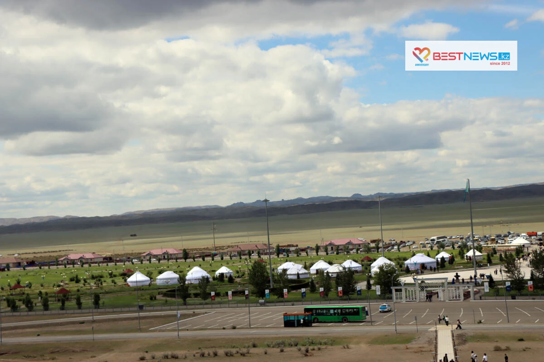 Здесь установили 184 праздничные белые юрты, а также специально создали смотровую площадку на одной из сопок. Здесь установили гигантские буквы - Абай Елi. Это место сразу стало самым посещаемым. С этой высоты место празднества было видно как на ладони - включая и домбру, которую из брусчатки выложили внизу на площади.
