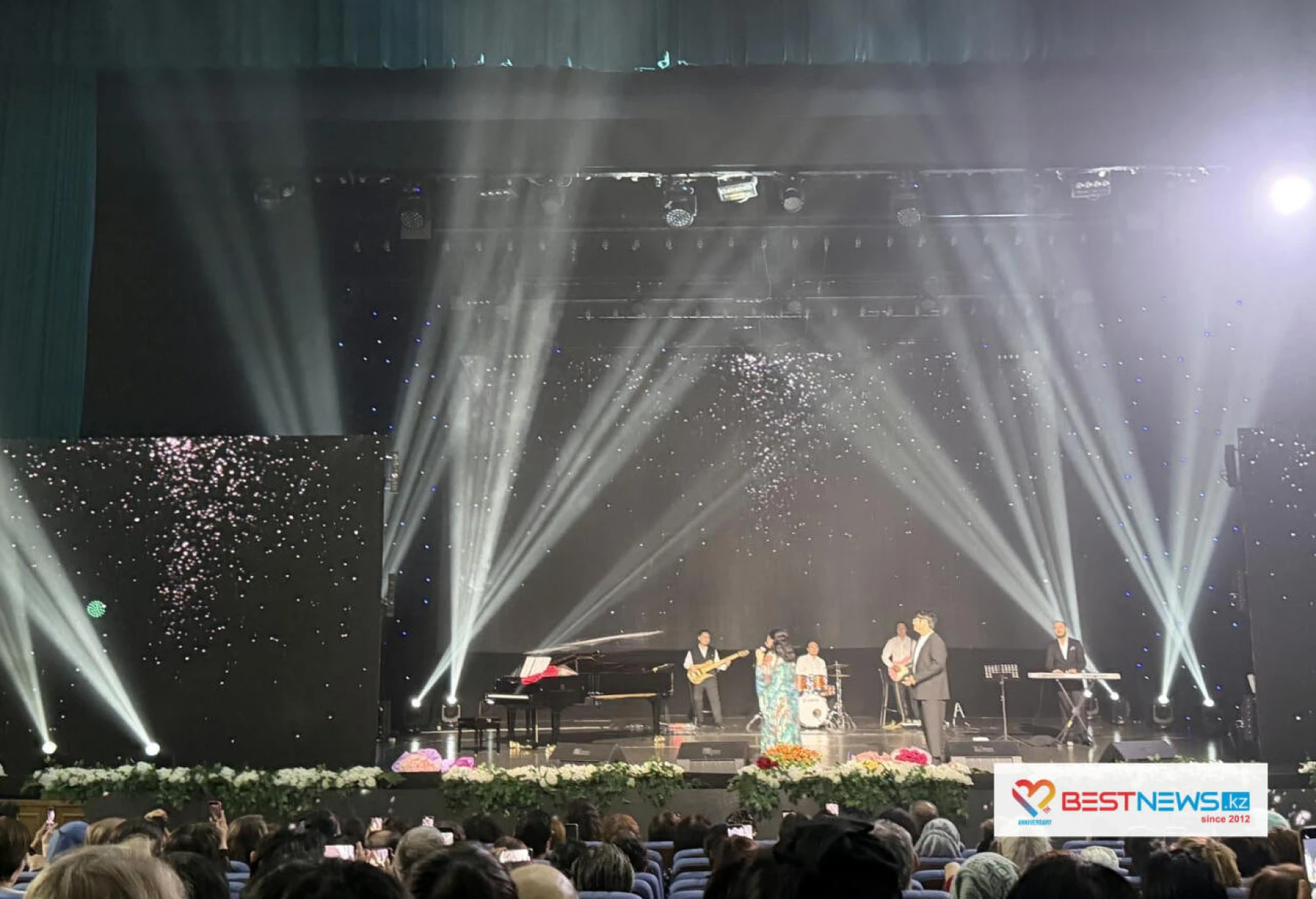 Фото | 23.03.2026, 11:03 228 1 минуту В Астане с триумфом прошел концерт Макпал Жунусовой Зрители начали собираться за час до начала концерта, передает корреспондент Bestnews.kz. Макпал Жунусова, как всегда, много шутила, меняла наряды, дарила улыбки. Пела исключительно "вживую", никакой фонограммы. #Фото Bestnews.kz Подписаться на новости