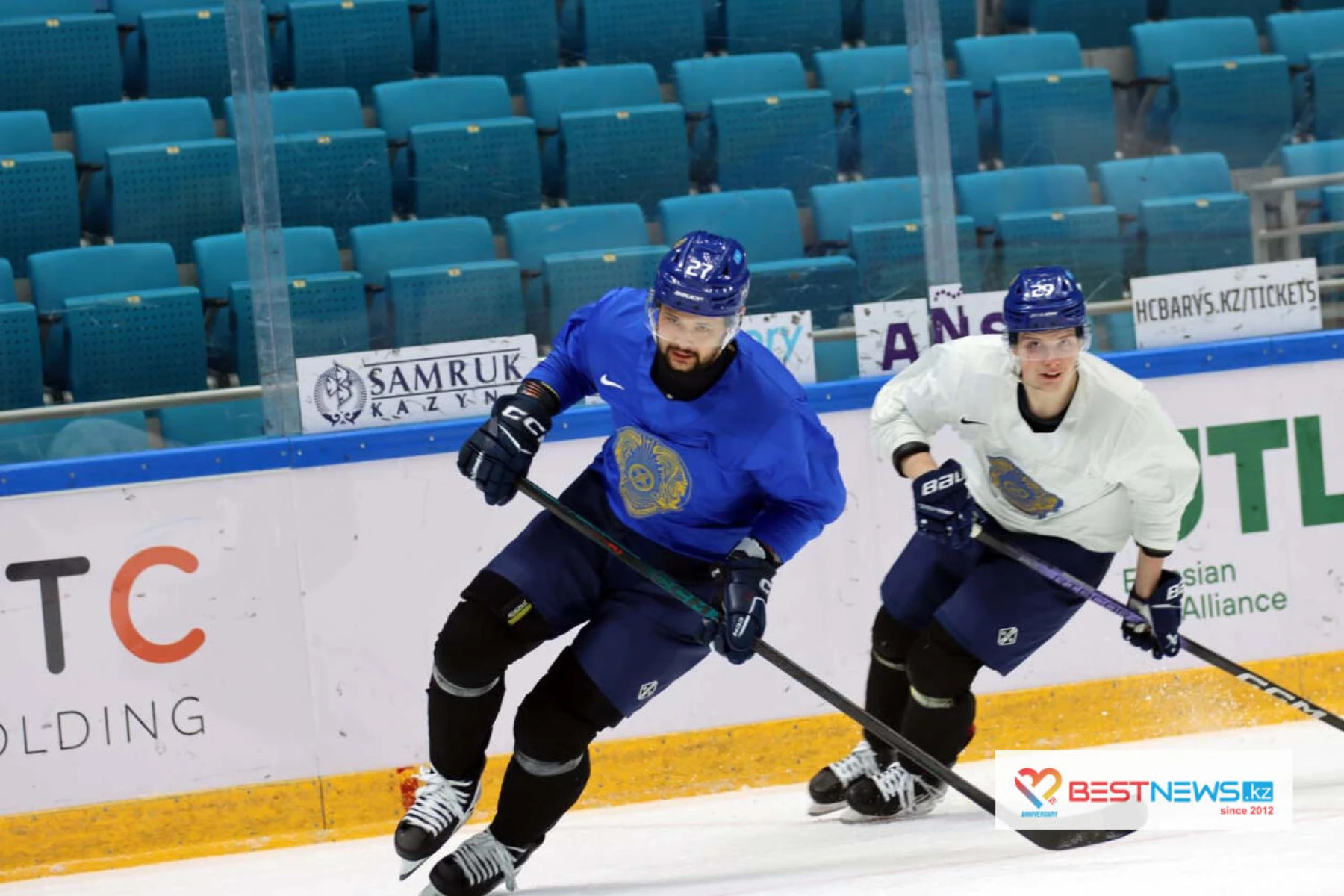 Сборная Казахстана по хоккею провела открытую тренировку перед вылетом на ЧМ в дивизионе IA.
