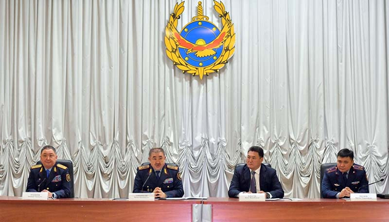 Нового начальника Департамента полиции личному составу представил министр внутренних дел Ерлан Тургумбаев вместе с акимом области Ермеком Маржикпаевым.