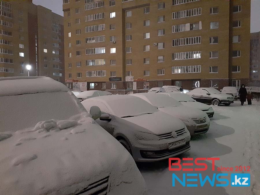 В Нур-Султане утро началось со снегопада, снега на дорогах и тротуараха стало гораздо больше.