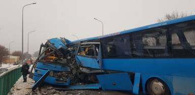 По данным ДП Карагандинской области, в Караганде на мосту ДСК столкнулись два автобуса. Один автобус выполнял маршрут #41, второй - #146, передает корреспондент ИА Bestnews.kz.
