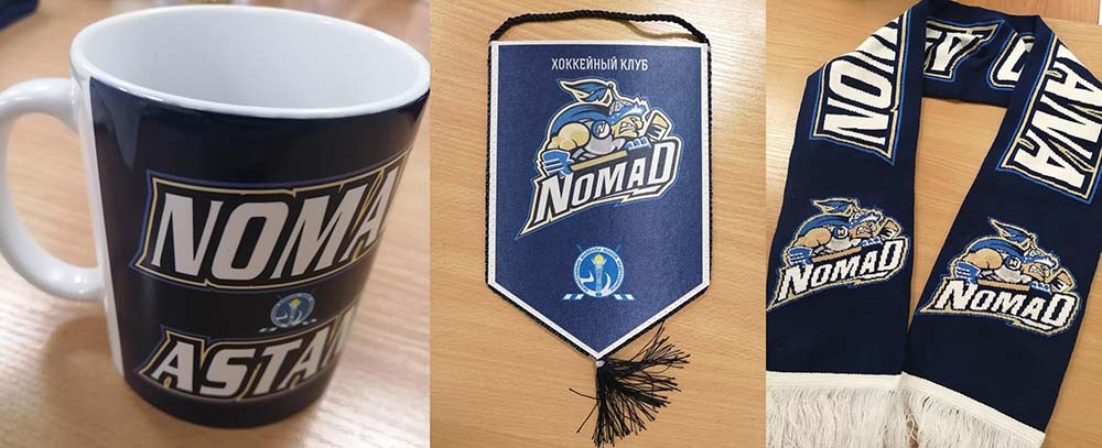 За первый правильный ответ - фирменная кружка ХК "Номад", за второй правильный ответ - фирменный шарф+вымпел с логотипом ХК "Номад", за третий правильный ответ - фирменная кружка ХК "Номад".