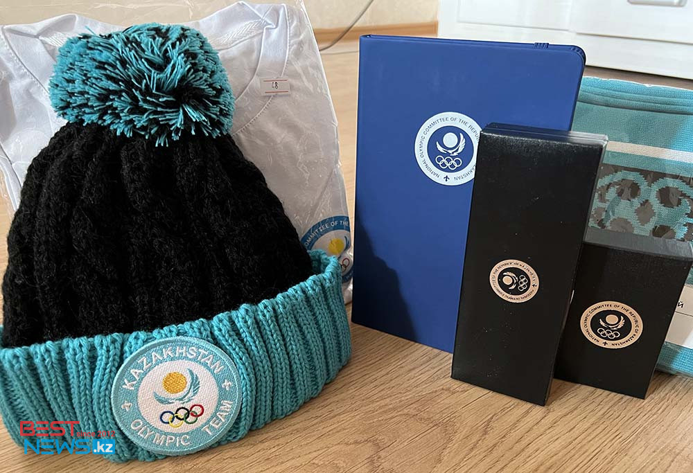 В наборе – шапочка, шарф, футболка – точь-в-точь, какие перед вылетом на Олимпиаду-2022 получили спортсмены сборной Казахстана.