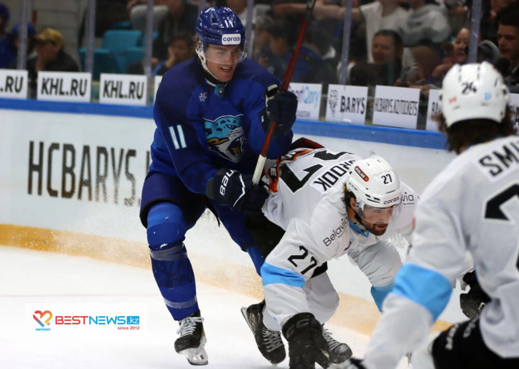 Фото-служба редакции Bestnews.kz представляет лучшие моменты матча. Игру на "Барыс Арене" посетило 11 600 зрителей.